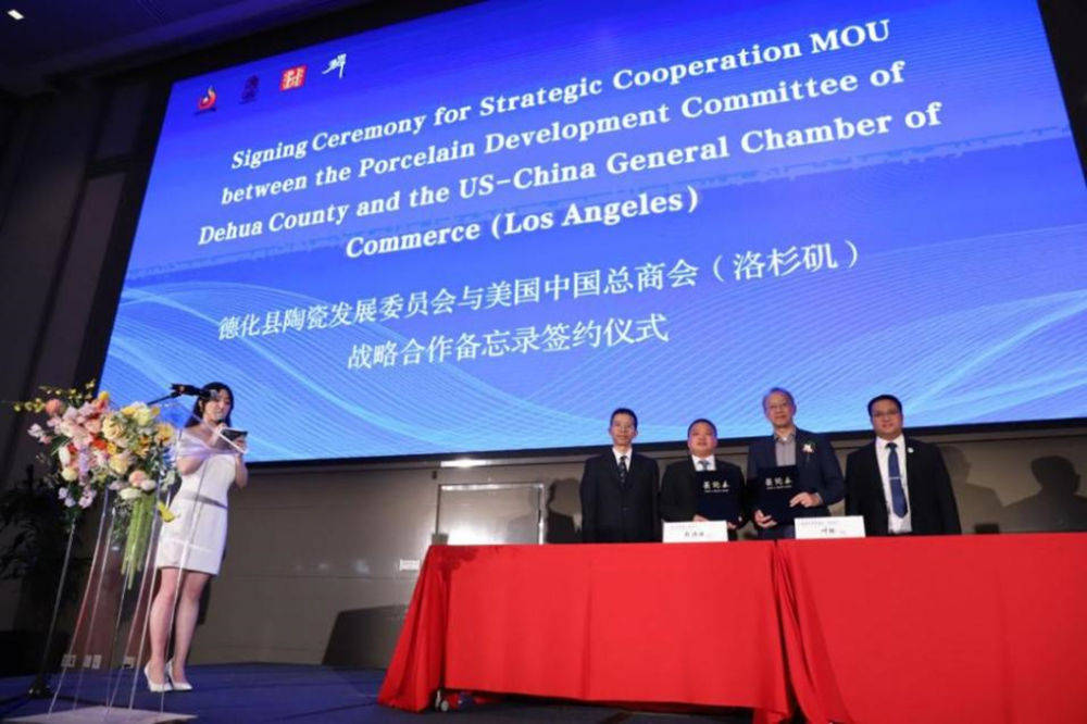 美国是德化最重要的国际贸易伙伴,订单量始终位居德化县出口首位。借洛杉矶之行,德化县代表团先后拜访美国中国总商会(洛杉矶)和美国风雷国际集团,并在推介会现场签署战略合作备忘录,未来将借助其在当地的资源和优势打通信息壁垒、优化跨境供应链、拓展海外市场空间。
